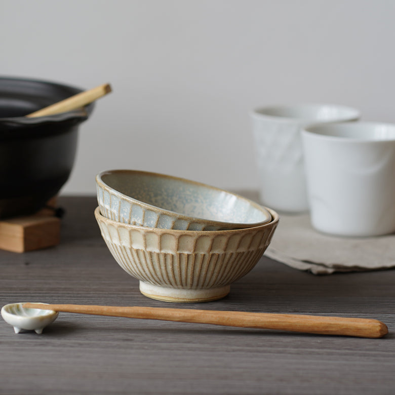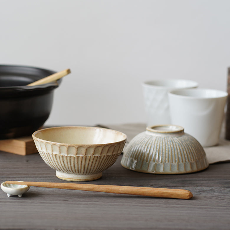 柔らかな丸みとTamari窯さんの特徴でもある、ひとつひとつ手で掘られた2段のしのぎ文からは女性作家さんらしい可愛さと優しさを感じます。