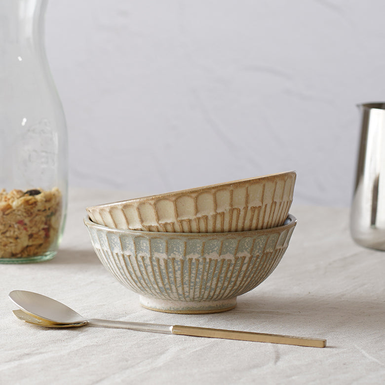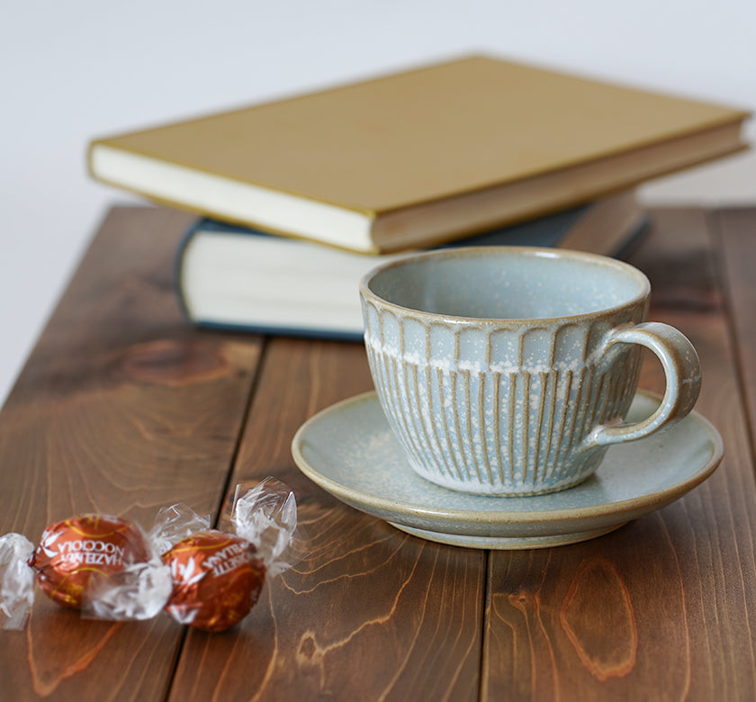 柔らかな丸みとTamari窯さんの特徴でもある、ひとつひとつ手で掘られた2段のしのぎ文からは女性作家さんらしい可愛さと優しさを感じます。