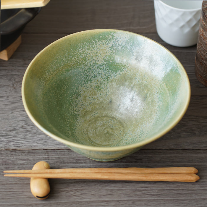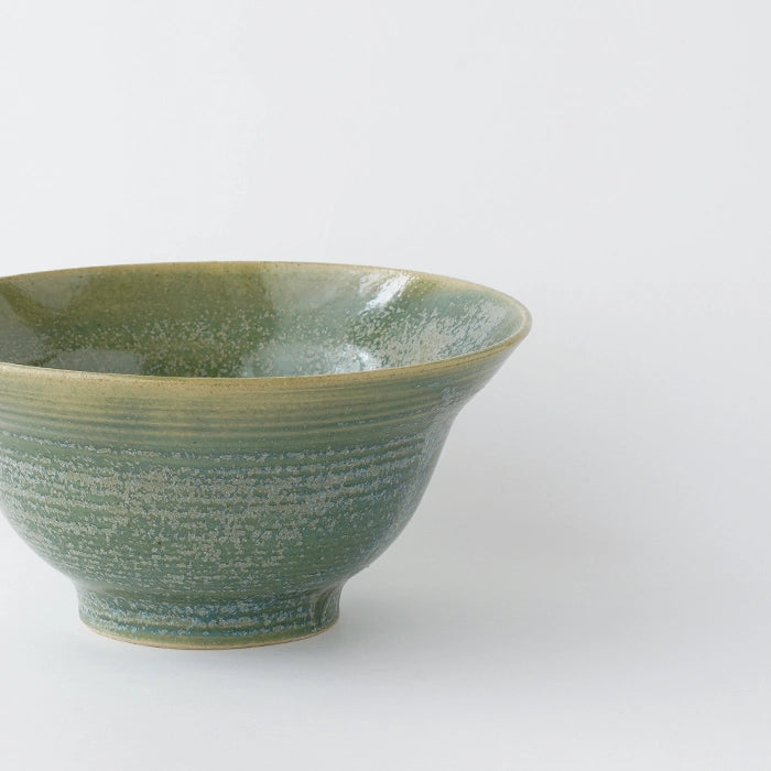 うつわの緑色は、落ち着いた色ながらも渋すぎない柔らかな印象の絶妙なニュアンス。抹茶色のような結晶釉により生み出された表情は、ボウルのアクセントとして楽しませてくれます。