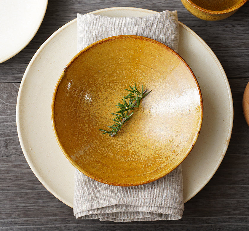 ボウル底の高台部分がしっかりと高く、口縁が少し反った造形は、出来立て熱々の料理でも熱が指まで伝わりにくいよう配慮されており、使い手のことを思いやる気持ちが伝わってきます。