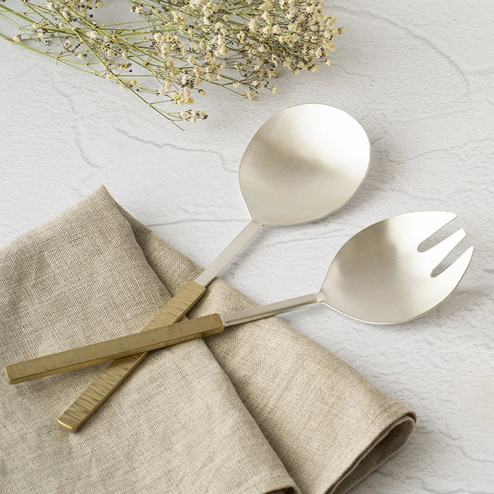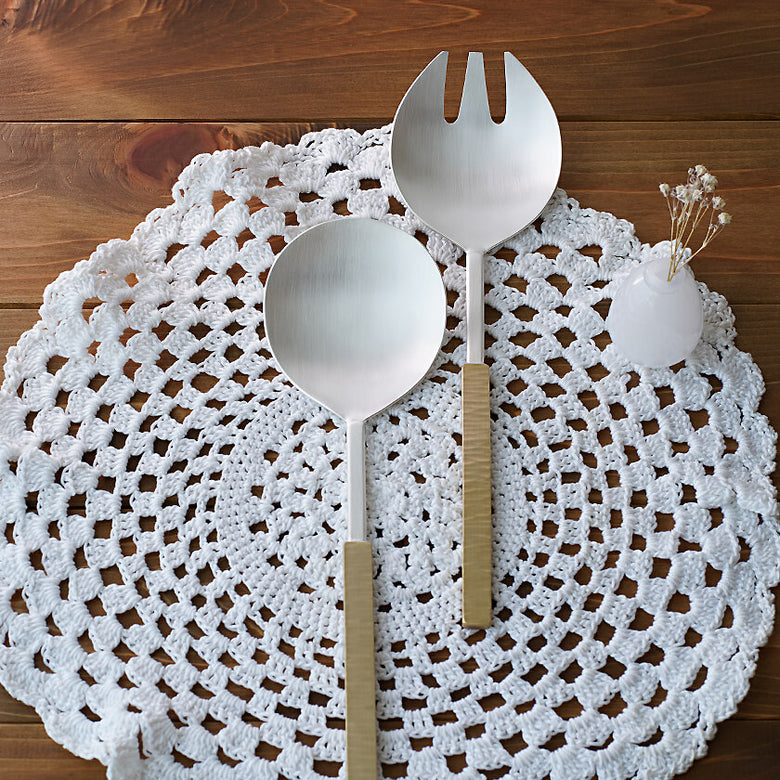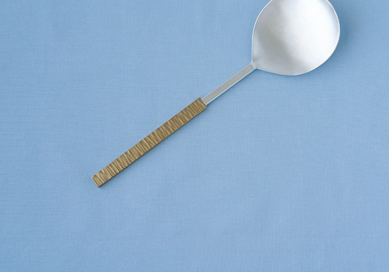シルバーコーティングの柔らかい光沢と、使い込むほどにアンティークのような深みを増す真鍮の柄が品の良い雰囲気を纏い、日々の食卓にちょっとした特別感を与えてくれます。