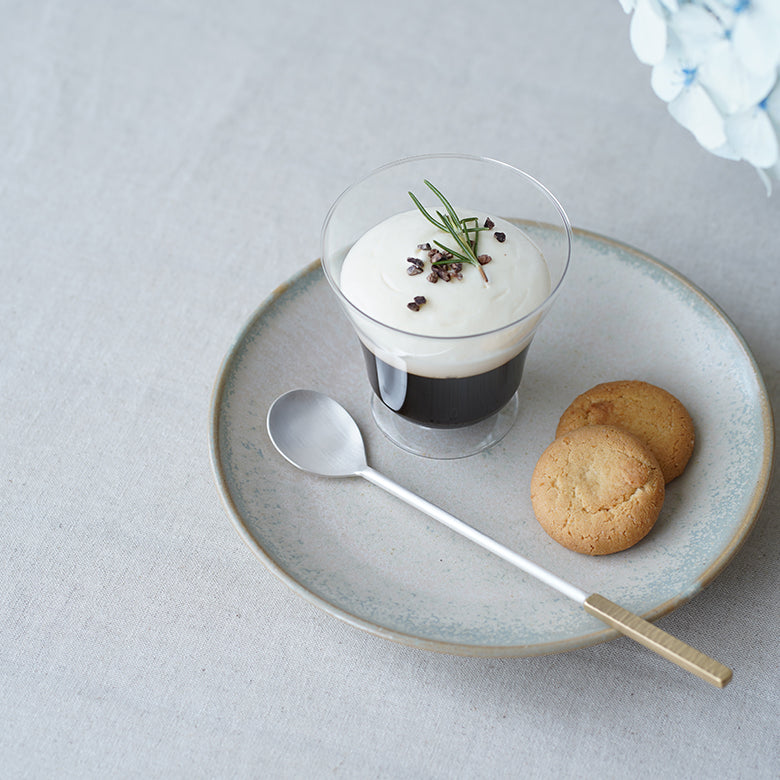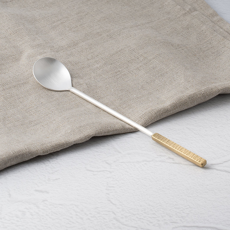 シルバーコーティングの柔らかい光沢と、使い込むほどにアンティークのような深みを増す真鍮の柄が品の良い雰囲気を纏い、日々の癒しにちょっとした特別感を与えてくれます。