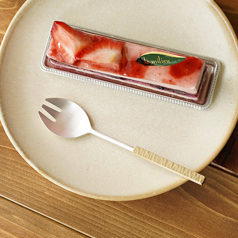 口に入る部分がスプーンの様に丸くなっているため、果物がのったプリンやゼリー、タルトなどフォークとスプーンどちらで食べようか迷ってしまうスイーツにぴったり。