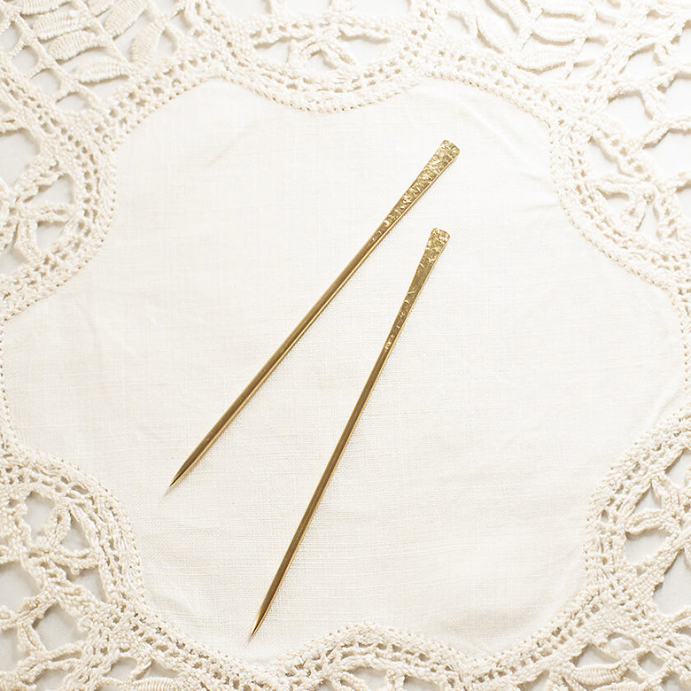 穏やかな輝きが素敵なatelier PEKAさんの作品。こちらのピックは、オリーブ、ピンチョスなどの小さなおつまみや、一口サイズのお菓子にはもちろん、崩れやすいサンドイッチをまとめるのにもぴったりです。