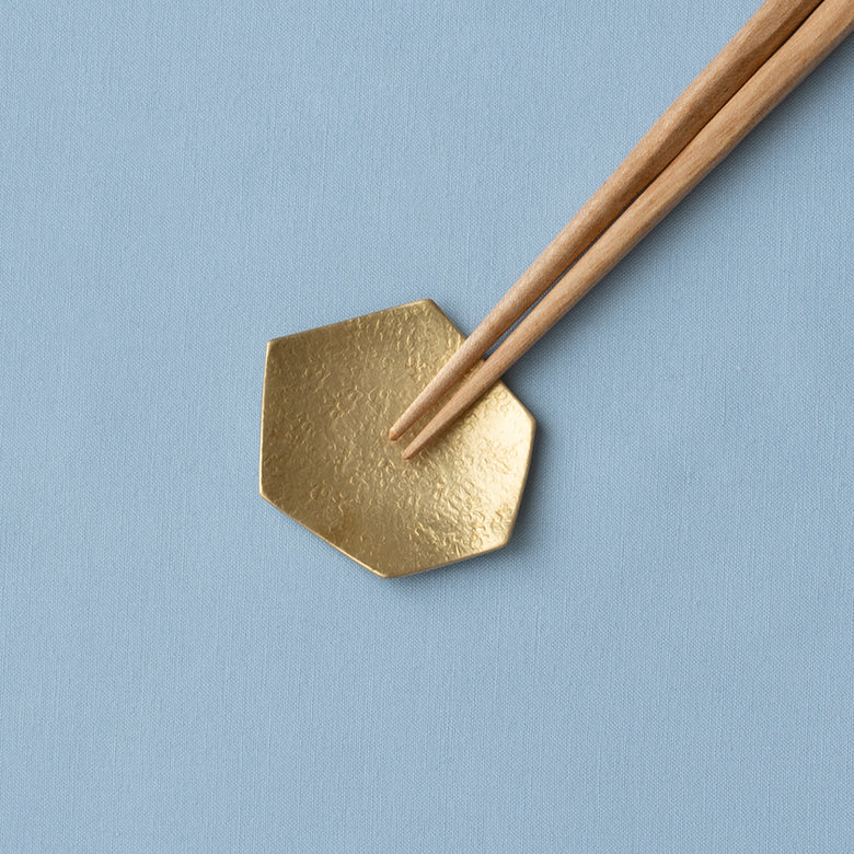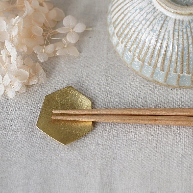 真鍮特有の光沢を放つ六角の箸置き。