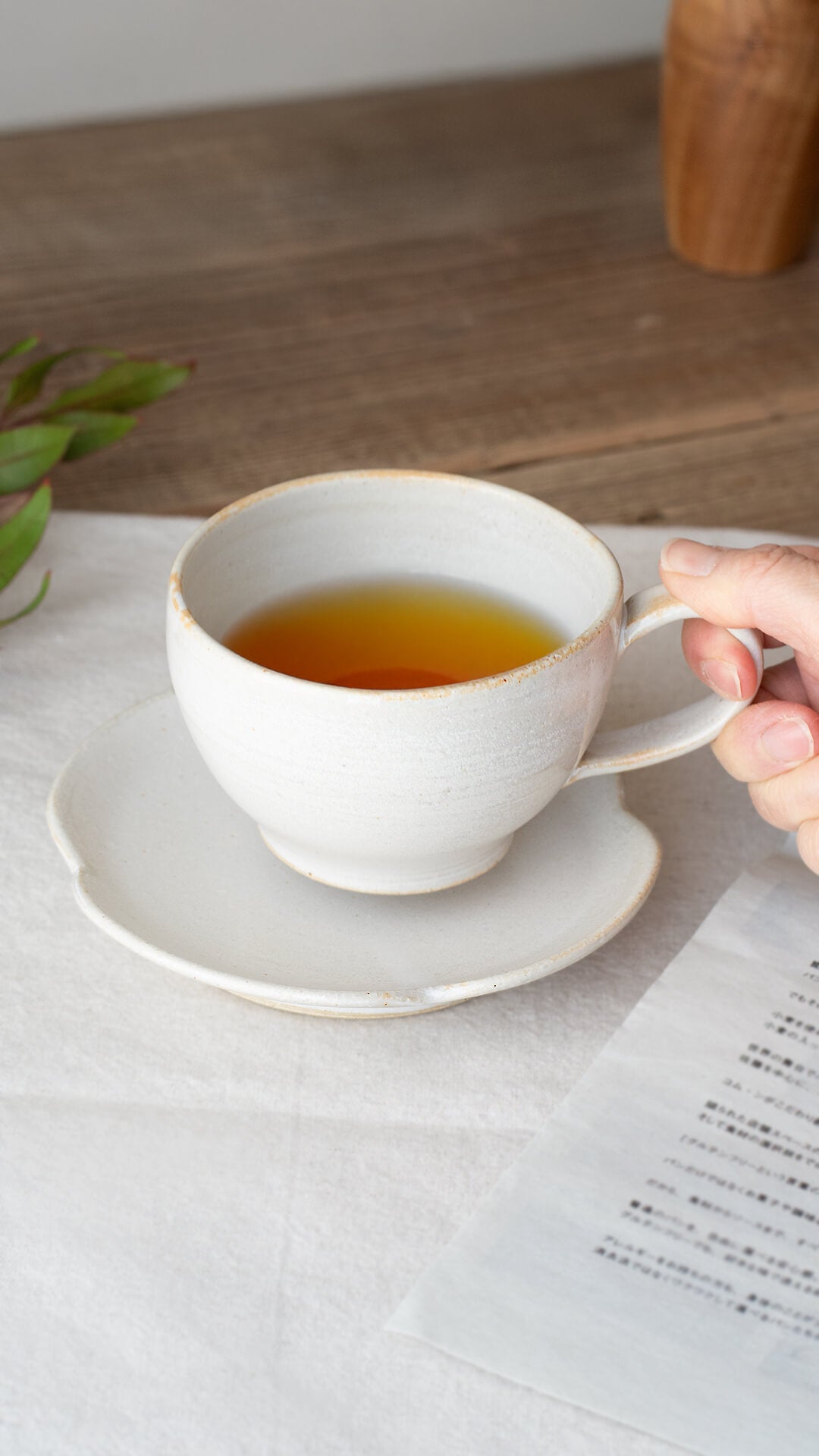 お花のようなフォルムが愛らしいソーサーと一緒にお使いいただくと、さらに可愛らしく、気分もぐっと上がります。