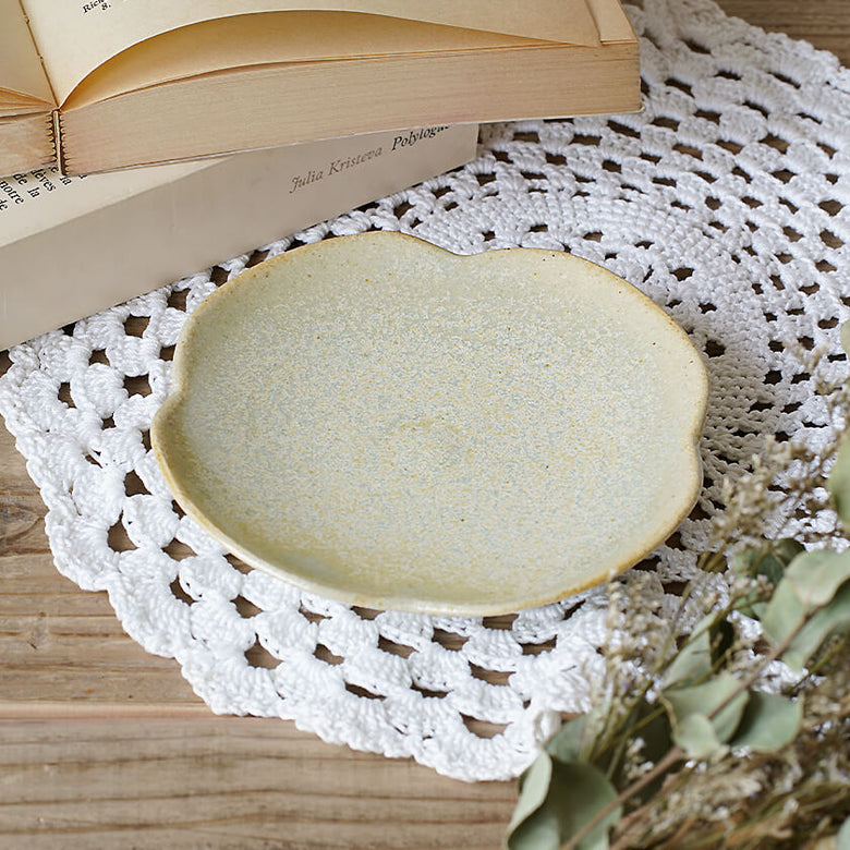 D釉 ソーサー 花 ライトグリーン
