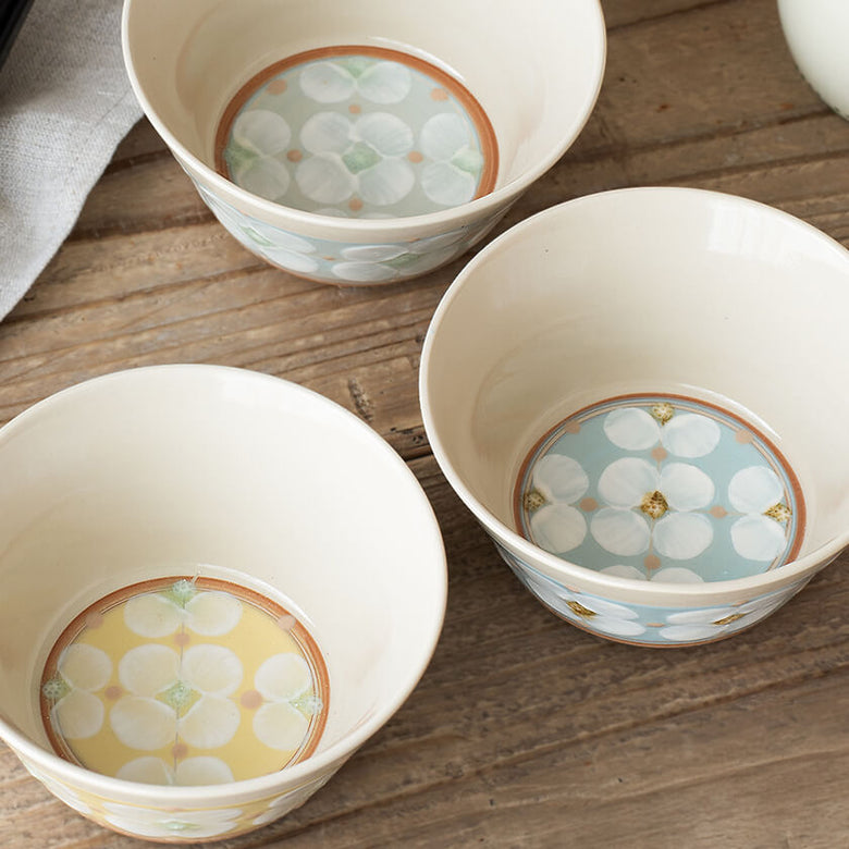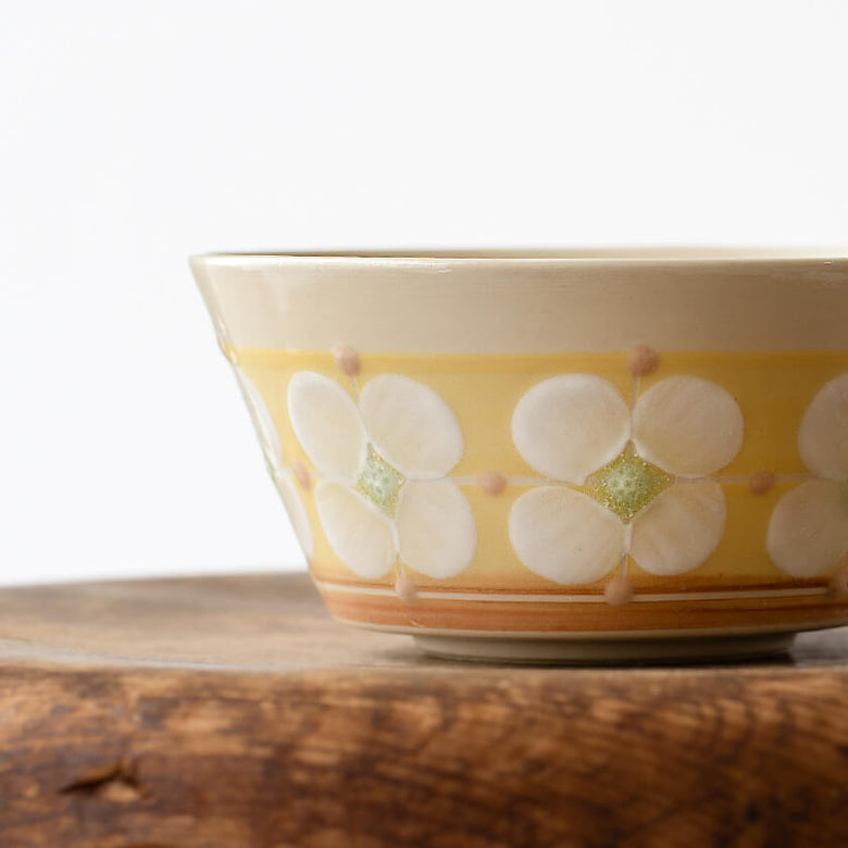 明るく可愛らしい絵付けと、淡黄色の落ち着いた素地のバランスにより、洋食にも和食にも自然に馴染むのも精炻器の魅力です。