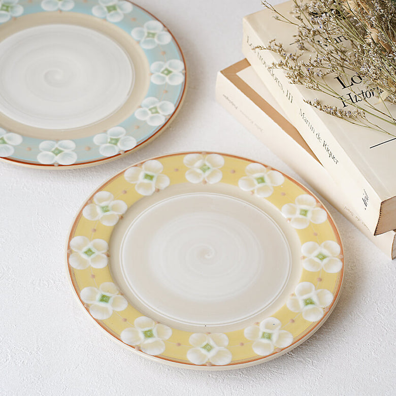 柔らかな花水木が描かれた鮮やかなリムが、気分も食卓もぱっと明るくしてくれます。
