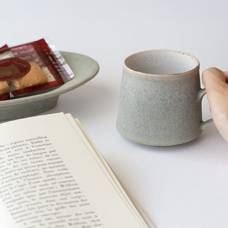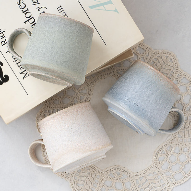 やわらかな緑色が、穏やかさと落ち着きを感じさせる山型マグ。
