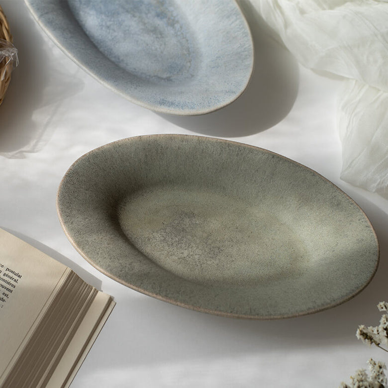 やわらかで落ち着きもある優しい緑色のオーバルプレート。