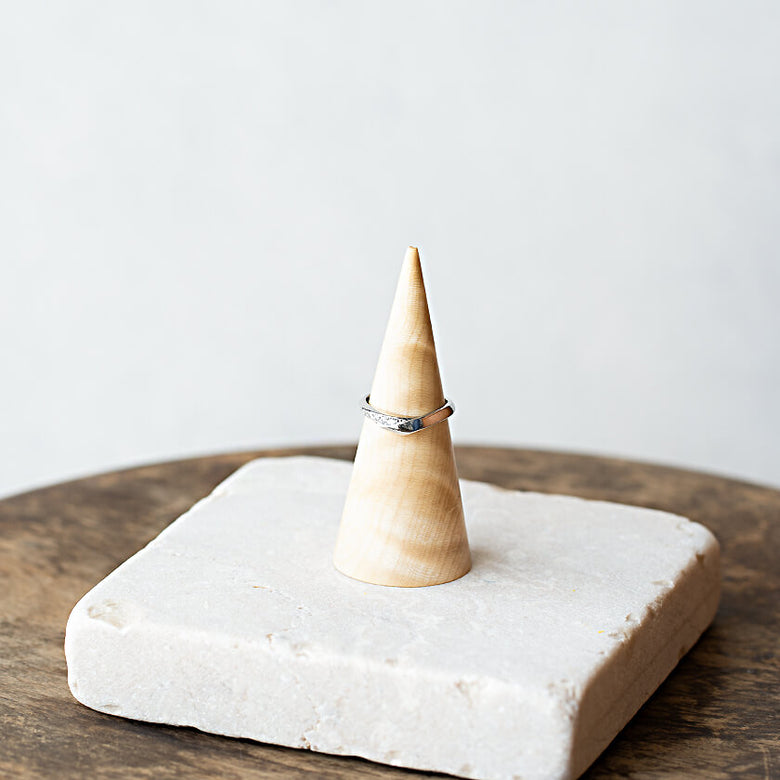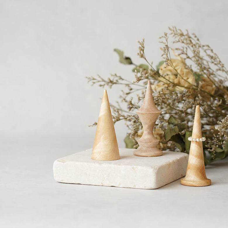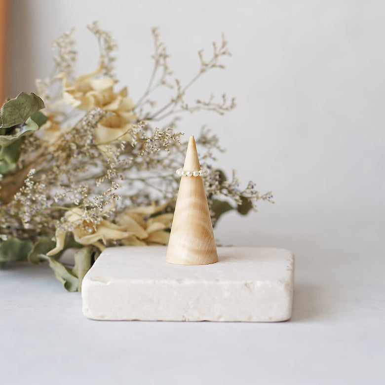 光沢感が美しいこちらリングホルダーは、敢えて潔くシンプルな造形で杢目の輝きと波打つ模様が生かされています。