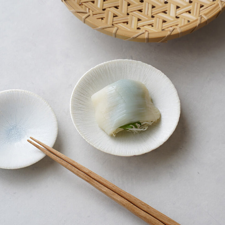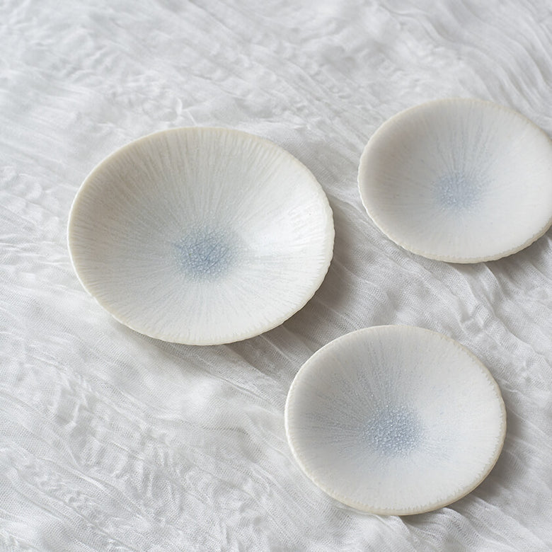 雨上がりの淡く霞んだ空を映したような、やさしく儚い色合いの4寸皿。