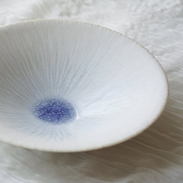 幻想的な美しさを放つ灰青のうつわは、空模様のように同じものはふたつとありません。