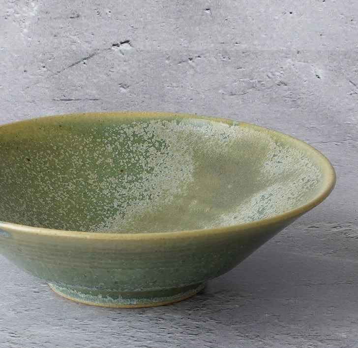 一度緑色の釉薬で全体をコーティングした後、結晶釉を施すことによって、世界に一つだけの表情を生み出しています。
