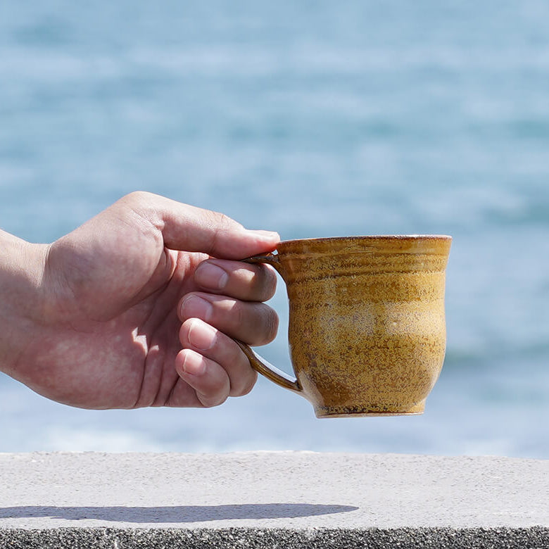 艶のある明るい飴色の釉薬と中にも施された結晶釉が相まって、ブラックコーヒーをかっこよく引き立ててくれます。