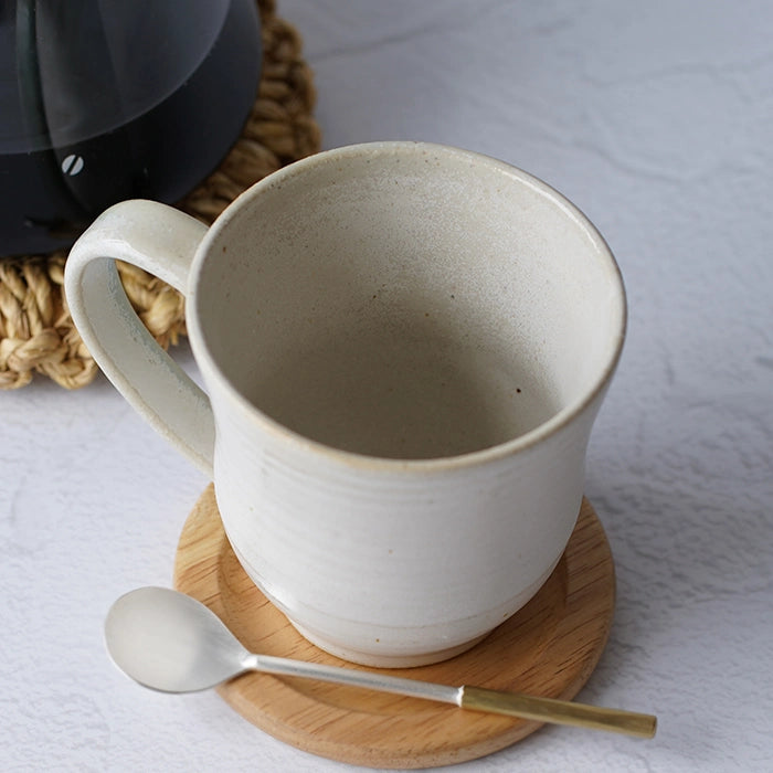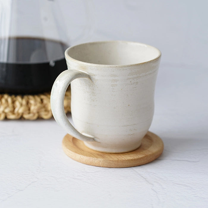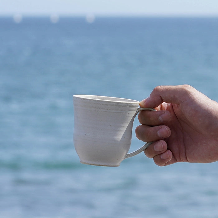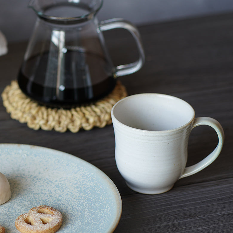 陶器本来の質感と釉薬の柔らかい白色が相まってふんわりとした雰囲気を纏い、朝の一杯を優しく引きたててくれます。