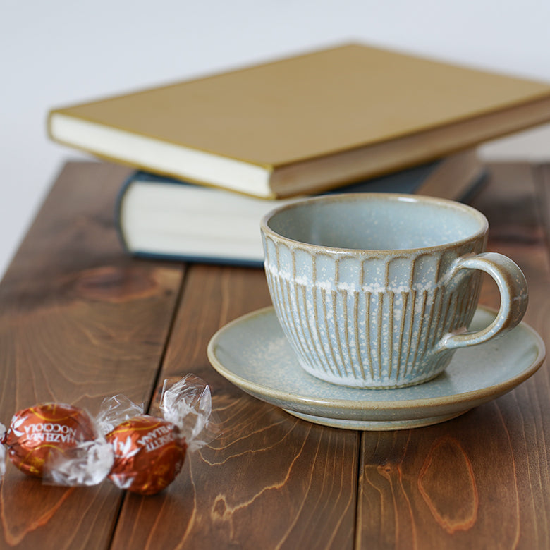 シンプルでありながら、カップを包み込む温かさと包容力を感じる緩く窪んでいる造形は、手を添えやすく、ソーサーごと持ち上げる際にもスムーズに口元まで運ぶことができます。