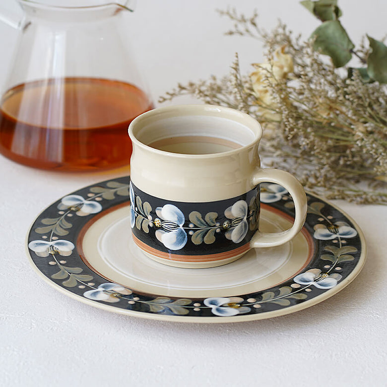 お二人が施される絵付けは、化粧土の柔らかさを感じる奥行のあるデザインで、優しさと包み込んでくれるようなおおらかさを感じます。