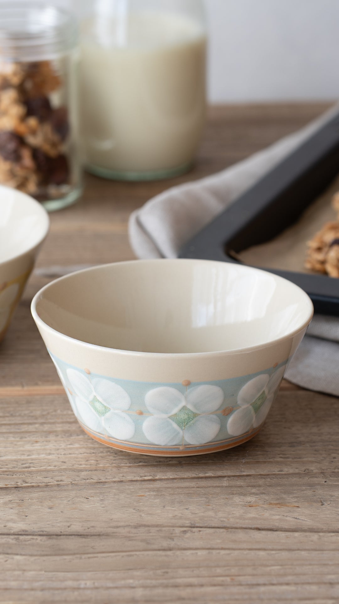 精炻器(せいせっき)特有の化粧土をたっぷり使ってやわらかに描かれた絵付けは、思わず触りたくなってしまうほど立体的。