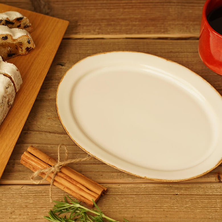 横の長さが20cmのこちらのうつわは、主菜はもちろん、パンやケーキをのせたり、グラタンやキッシュなどの取り皿として普段使いもしやすく