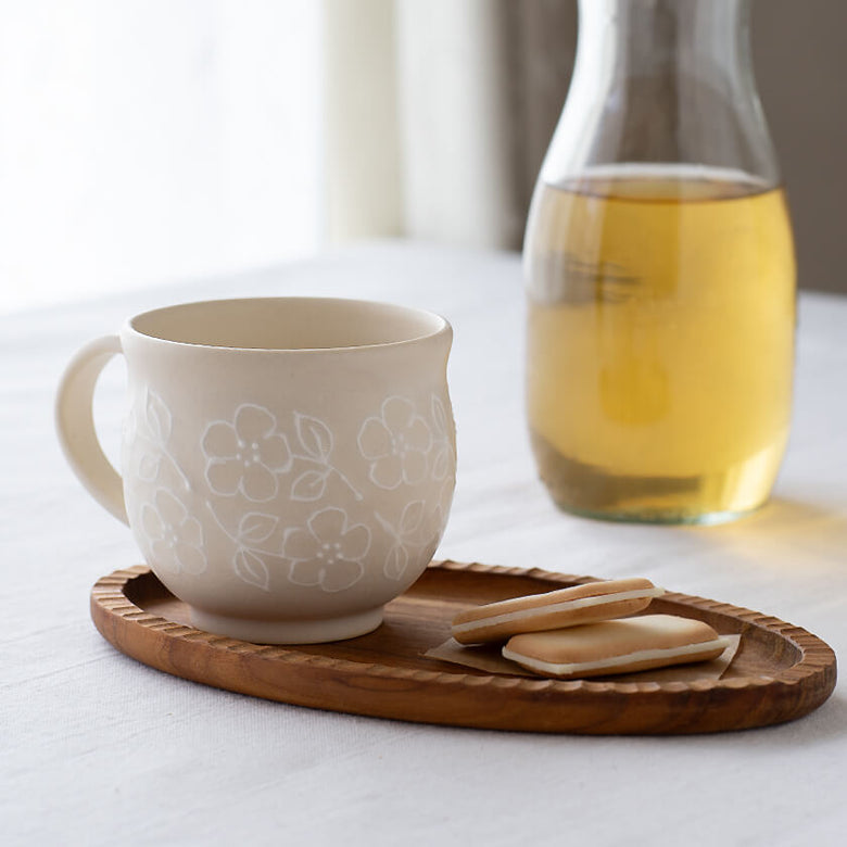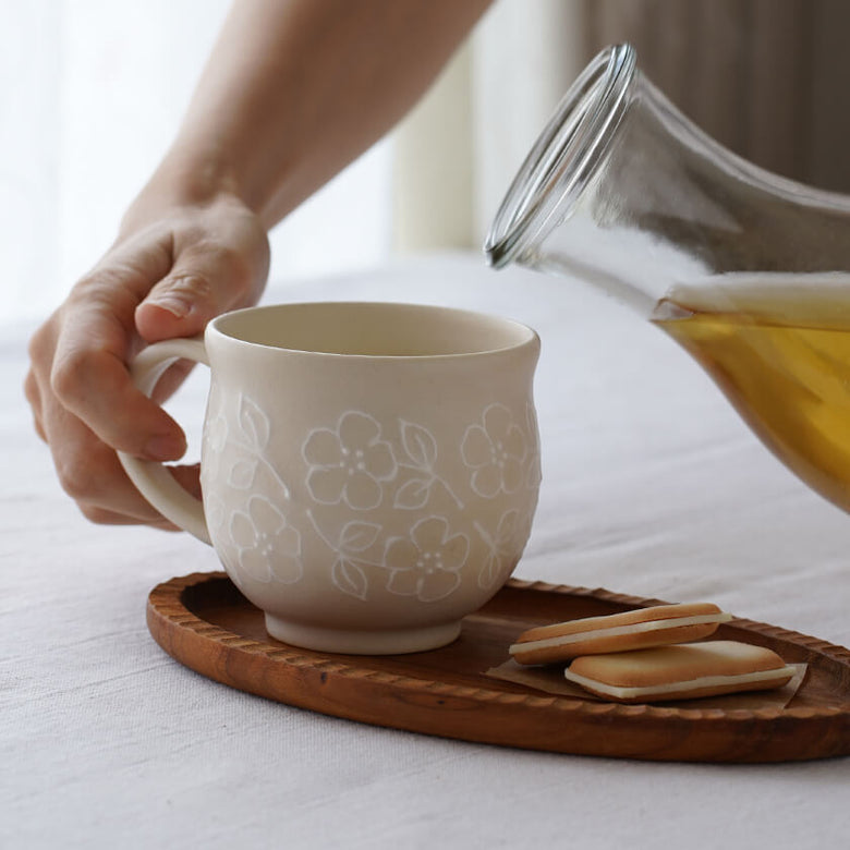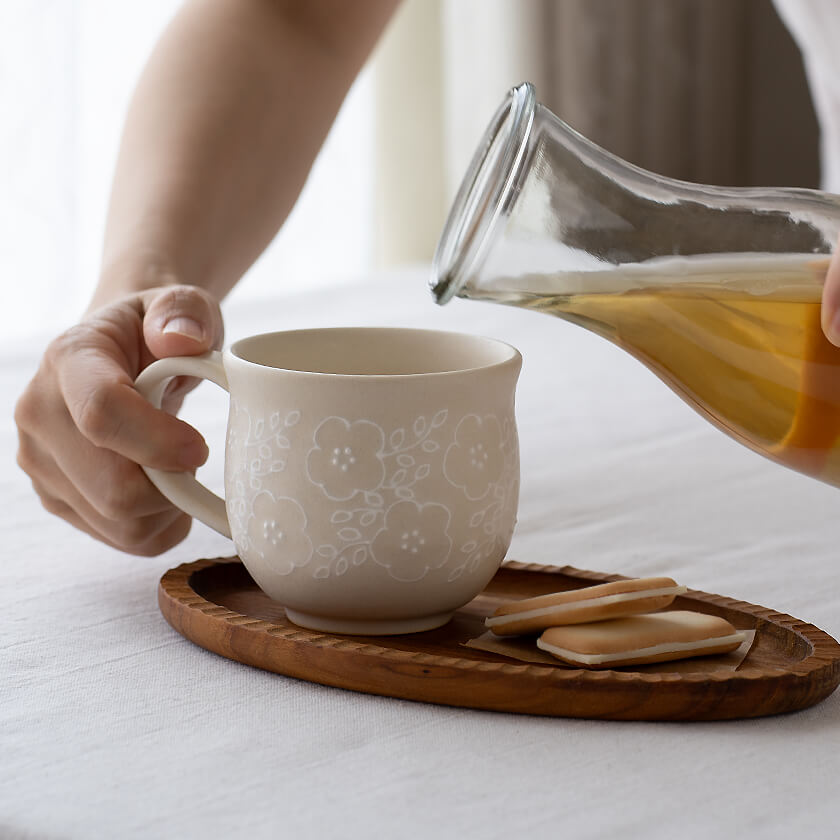 甘すぎない可愛らしさと落ち着いた雰囲気が素敵なこちらのマグは、年齢を問わず幅広い方にお楽しみいただけるデザインです。