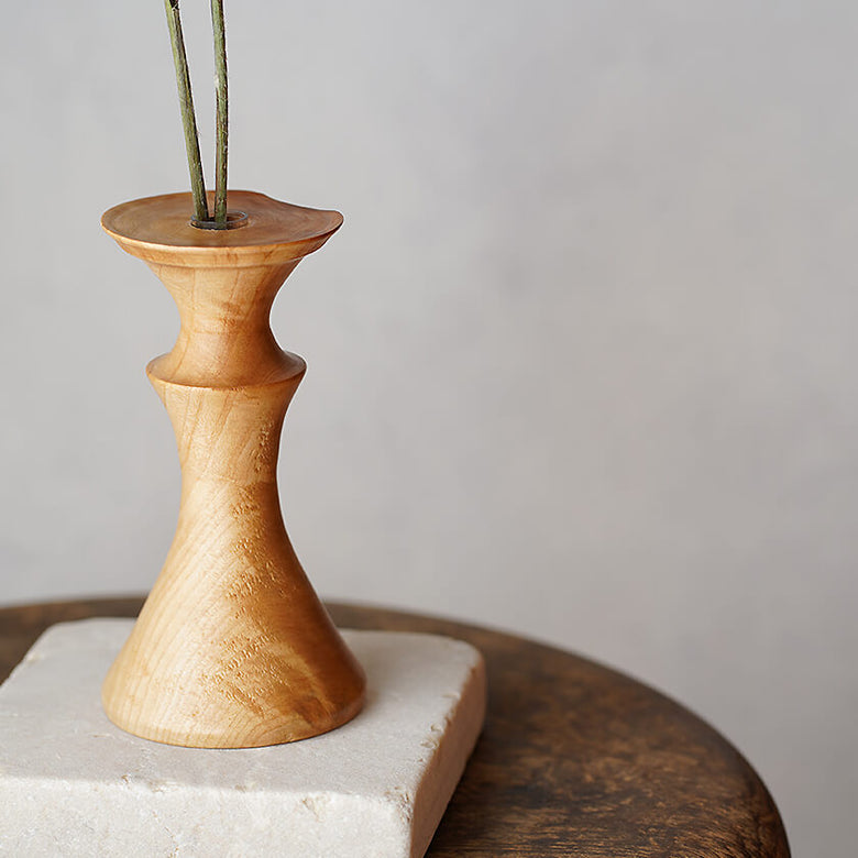 そんなカエデの表情豊かな杢目によってつくられた花器は、見る角度によって、光の当たり方によって全く違う雰囲気を愉しめるのが魅力の一つです。